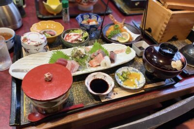小上がり席を備える昔ながらで気さくな店内で、生簀の魚介を使ったお造りなどの海鮮料理を提供します。定食や会席コースもございます。